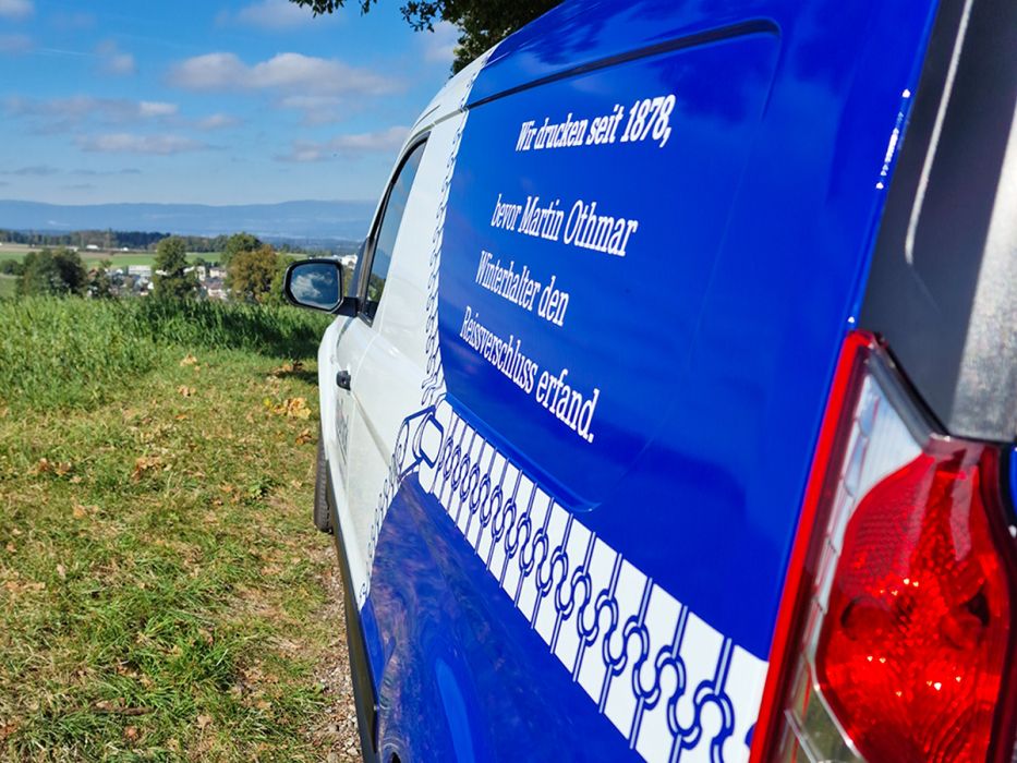 Unser neuer Lieferwagen kommt in einem augenfälligen Design daher. Die Auflösung des Rätsels ist nur auf einer Seite ersichtlich und soll die Neugiert ein bisschen «unterstützen».