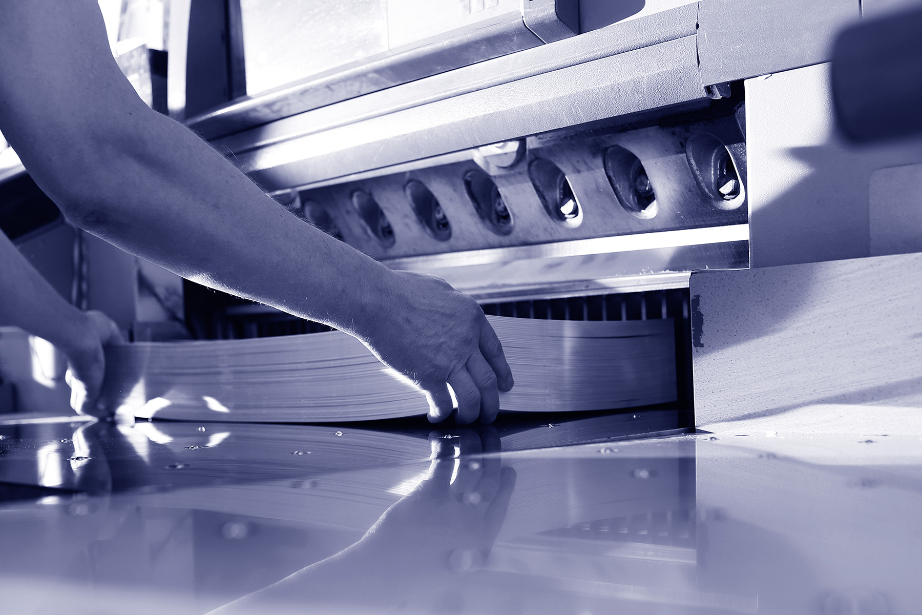 In der Weiterverarbeitung fügen wir Ihrem Produkt wesentliche Merkmale hinzu. Dies geht über verschiedene Veredelungsarten wie Prägungen, Stanzungen oder Rillungen, funktional auch durch spannende Bindearten oder nach Bedarf, indem einfach zu fünfzig Exemplaren bandiert wird.